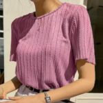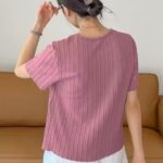 Design : The top features a ribbed or vertically textured pattern. It has a round neckline and short sleeves.